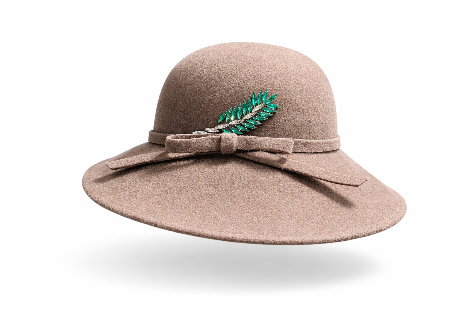 Capeline Marone en feutre taupe, élégante et féminine. Une forme raffinée qui apporte allure et distinction, idéale pour une tenue chic de ville ou d’occasion.