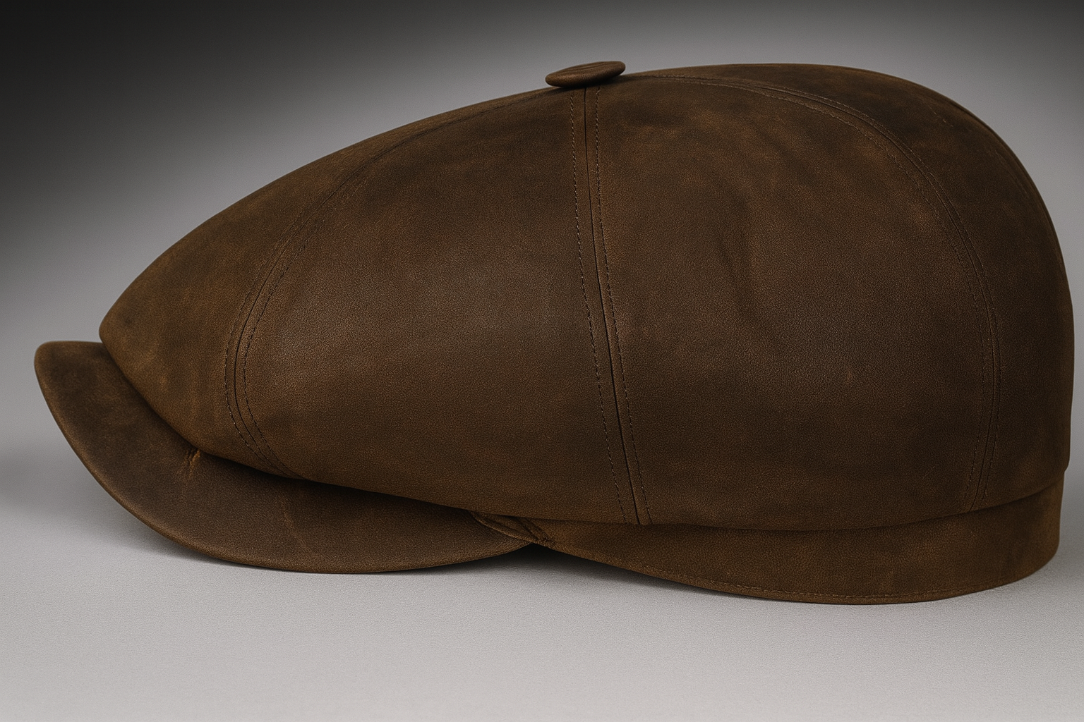 Casquette Hatteras en daim de chèvre souple. Marron vintage, légère, hydrofuge, silhouette traditionnelle moulée et confort haut de gamme pour l’hiver.